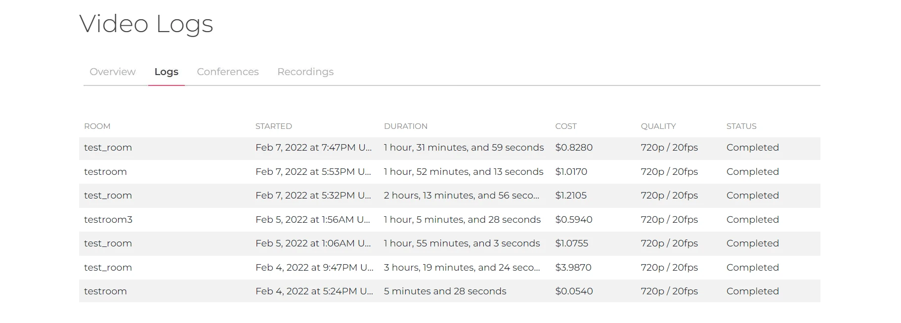 Access logs for your video conference room in the unified Logs tab of the Dashboard sidebar.